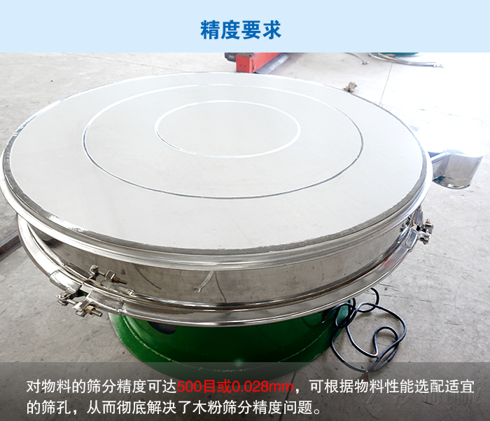 解決方法:超聲波旋振篩具有體積小、結(jié)構(gòu)簡單合理、篩分精度高、維修方便、保養(yǎng)簡單、篩網(wǎng)壽命長等優(yōu)點。可單層或多層使用,可達到五層,對物料的篩分精度可達500目或0.028mm,可根據(jù)物料性能選配適宜的篩孔,從而解決了木粉篩分精度問題。