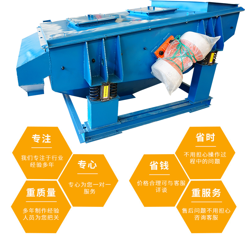 碳鋼直線振動篩主要由篩箱、篩框、篩網、振動電機、電機臺座、減振彈簧、支架等組成。